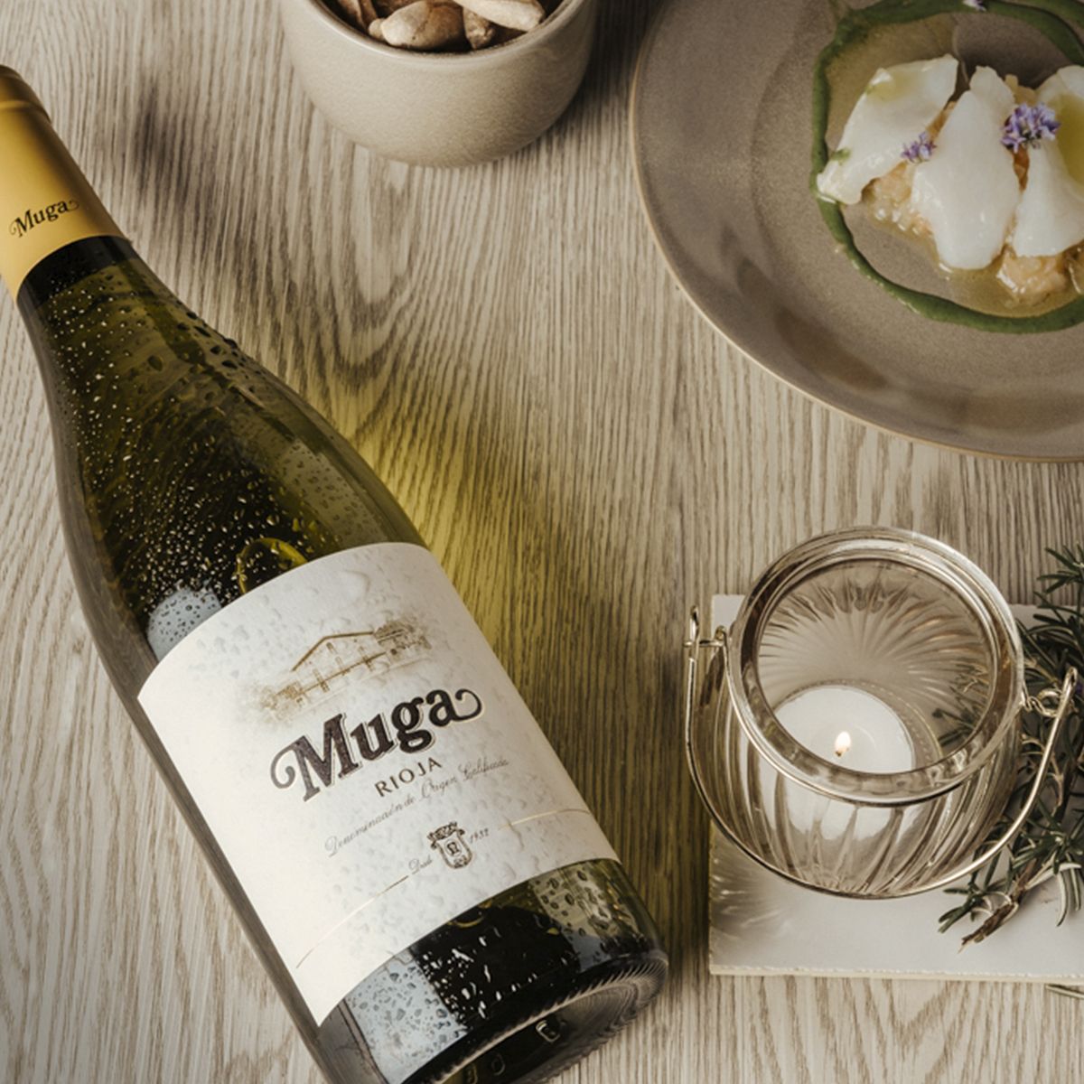 Muga Blanco es un vino de alta intensidad en nariz y equilibrado en boca. Los tonos cítricos que destacan sobre los aromas tostados hacen de este blanco un acompañante perfecto para pescados a la plancha y mariscos.